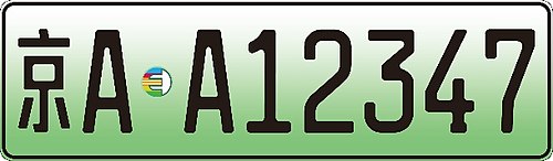 普通民用號牌:首字段為省級行政區劃簡體漢字簡稱(如京、滬等);次字段為二級行政區劃拉丁字母代碼;第三字段為5位阿拉伯數字、拉丁字母混排。
