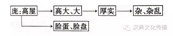 《說(shuō)文》:“龐,高屋也。”這個(gè)本義后世已經(jīng)消失,而多用“高大”這個(gè)引申義,如王夫之《小云山記》:“大云龐然大也。”這是說(shuō):大云山實(shí)在是高大呀!由“高大”又可以引申為“雜亂”,如《舊唐書·李勉傳》:“汴州水陸所湊,邑居龐雜。”大意是:在汴州水陸所聚合的地方,城市所居極多而又雜亂。