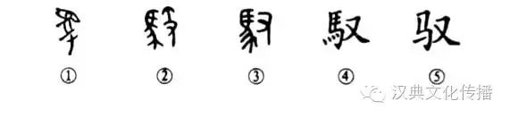 甲骨文前面是一匹馬,后面是手執(zhí)鞭形,合起來像手執(zhí)馬鞭趕馬的形狀。金文由甲骨文演變而來。小篆失去鞭形。《左民安·漢字例話》:“甲骨文上部是一匹頭朝上的馬,下部是一只手,是用手駕馭馬的意思。”“馭”的本義是“驅馬”。