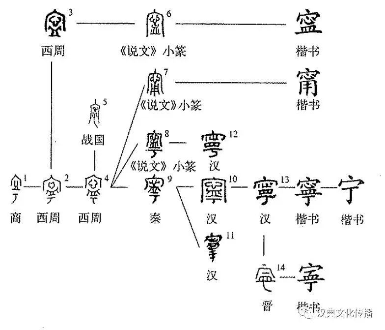 (用)”,延續到后世(參見“甯”字條)。秦漢之后的基本形式是“寧”。晉代出現過簡寫形式“