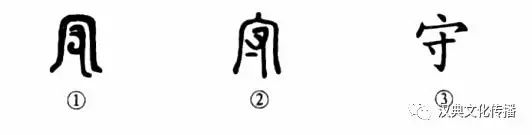 在《墨子·公輸》中說:“宋莫能守,可攻也。”這也就是說,宋國沒有辦法防守,可以攻取。為什么“守”字要這樣寫呢?你看金文①外面是房屋,屋內有一只大手,這就有“防守”或“把持”之意。所以“守”字是個會意字。小篆②屋內是個“寸”字,實際上古代的“寸”字也完全是“手”形。所以小篆也是直接由金文演變而來。③是楷書的寫法,同于小篆的形體。