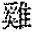 形聲字。從隹,奚聲。鷄的異體。《說文》以雞為字頭正體,以鷄為重文。現代漢字以鷄為正體,淘汰了雞。漢魏到隋唐碑刻中,尚出現過以下俗體:、