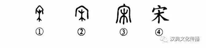 “漢儒專言訓詁,宋儒專言義理。”這個“宋”字本為會意字。①是甲骨文的形體,其外為房屋形,屋內有木支撐。②是金文形體,與甲骨文相似。③是小篆的形體.與金文極相似。④是楷書的寫法。