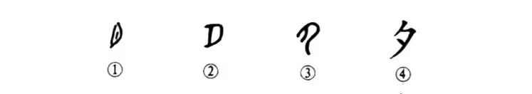 “夕陽無限好,只是近黃昏。”這個“夕陽”的“夕”字是個象形字。甲骨文①的形體,多么像個半“月”形!可見“夕”與“月”在金文中很可能就是一個字。金文②則中間去了一小豎,但仍是半“月”形;中間的那一小豎可能代表“光”,有光為“月”,而無光則為“夕”。小篆③同于金文,只是下部不封口了。楷書④的外形類似于月亮,但中間少一畫,是“月”而又殘缺不全無光無色,所以“夕”就是傍晚之義。