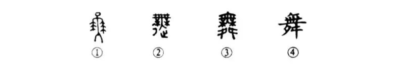 李白《高句驪》詩:“翩翩舞廣袖”這個“舞”字就是個象形字。我們看甲骨文①的中間是正面立著的一個人,左右兩手執牛尾而舞,正如后世頭插雉翎翩翩起舞的意思。金文②發生了較大的變化,除了基本上保留甲骨文的形象之外,又在其左下加上了“彳”,在其右下加上了“止”,合起來是“辵”,表示動的意思一一“起舞”當然要動的。小篆③則又比金文簡化了一些,在“舞人”之下,加上了左右的兩只腳,這也正表明舞蹈必須用腳。④是楷書寫法,是直接由小篆楷化而來,筆畫極為繁雜,但至今仍未簡化