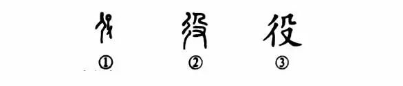 “急應(yīng)河陽(yáng)役,猶得備晨炊。”這里的“役”字本為會(huì)意字。①是甲骨文的形體,左邊是一個(gè)面朝左站立的人,其背后是一只手執(zhí)物打擊。表示“役使”。②是小篆的形體。③是楷書的寫法。