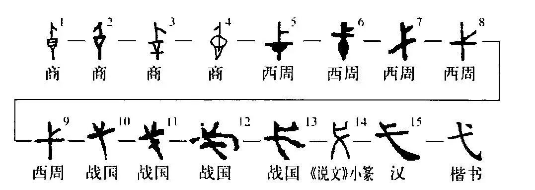 象形字。甲骨文“弋”字作等形,像一種下端很尖的樁狀物。西周金文作