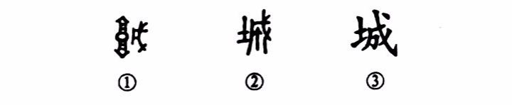 這是“春城無處不飛花”的“城”字。金文①左邊中間的圓圈是表示城圍,上下兩端是兩座城樓對峙。右邊是一把鋒刃朝左的大斧頭(武器),是用武器保衛城池的意思。可見這個“城”字是會意兼形聲。說它是會意,因為有以武器護城的意思(說它是形聲,因為它是左形(城郭形)右聲(成)。②是小篆的形體,將金文左邊的城郭簡化為“土”字(因城樓與土有關),書寫方便。③是楷書的形體,直接由小篆演變過來的。