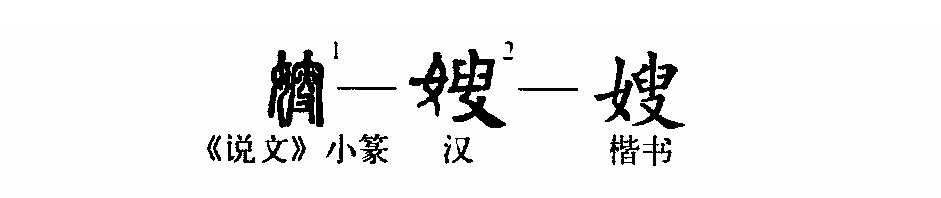 “父母早下世,兄嫂養育恩?!边@個“嫂”字是形聲字。①是小篆的形體,左邊為“女”,右邊為“叟”(“叟”即“叜”,是“搜”的本字)。可見這是一個“從女叟聲”的形聲字。②是楷書的寫法。