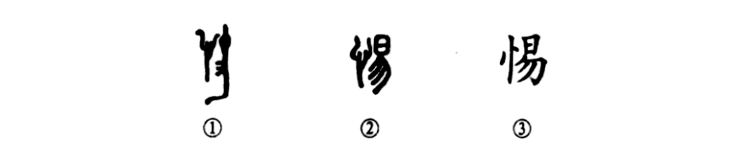這個“提高警惕”的“惕”字,是一個會意兼形聲的字。金文①的左邊是個“心”,右邊是“易”字,像“蜥蜴”(四腳蛇)之形,上部是頭,下部有腿有尾。說它是會意字,是認為四腳蛇要咬人,所以要當心!有“心”字表示提高警惕;說它是形聲字,因為是左形(心)右聲(易)。②是小篆的形體,是由金文直接演變而來。③是楷書的寫法,是由小篆直接演變而來。