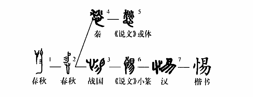 形聲字。從心,易聲。金文字形為左“心”、右“易”,或作上“易”、下“心”;小篆由金文演變而來,為左右結構?;蝮w與秦簡一脈相承,作從“心”、“狄”聲,為上下結構;隸楷文字由小篆演變而來,寫作“惕”。本義為恭敬。《說文》:“惕,敬也。”由恭敬引申為警惕、謹慎,又引申為畏懼、戒懼。《書·盤庚上》:“惟汝含德,不惕予一人。”《左傳·襄公二十二年》:“無日不惕,豈敢忘職。”杜預注:“惕,懼也。”由畏懼引申為憂傷?!疤琛痹诠糯€有疾、急速之義。(郭小武葉青)