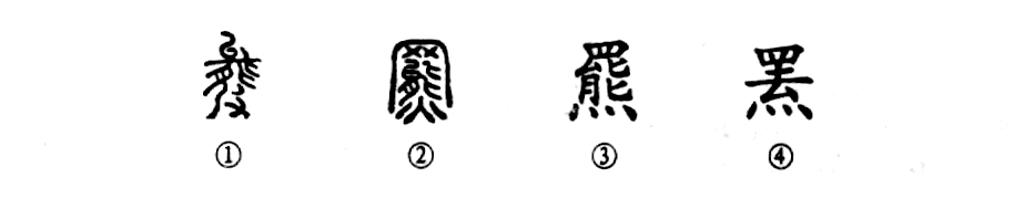 “獨有英雄驅虎豹,更無豪杰怕熊羆。”這個“羆”字本為形聲字。①是《說文》中古文的形體,其上部的“能”是“熊”的象形字;下部是“皮”,表聲。可見“羆”本是“從能,皮聲”的形聲字。②是小篆的形體,“熊”上增“網(wǎng)”。許慎說:“從熊,罷省聲。”又成為一個新的形聲字了。③是楷書繁體字。④為簡化字。