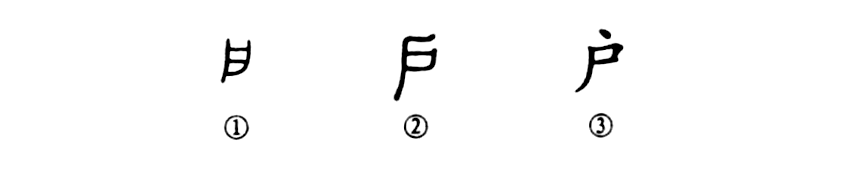 “姊妹弟兄皆列土,可憐光彩生門戶。”這個“戶”字是個象形字。甲骨文①是一扇門的樣子,也就是小門的意思。②是小篆的形體,與甲骨文非常相似。③是楷書的寫法。