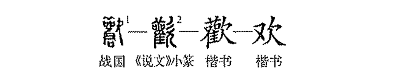 請注意:“歡”字在古籍中還常常寫作懽、驩、讙,這都是“歡”的異體字,現(xiàn)在均已廢除。