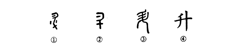“蒸庶欣欣,喜遇升平。”這個“升”字本為象形字。甲骨文①就像一把頭朝上口朝左的大勺子,其口中的一點表示盛的東西。可見“升”本為量具。②是金文的形體。③是小篆的形體,變得復雜化了。④是楷書的寫法。