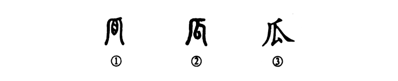 “瓜熟蒂落”,“瓜”字是個象形字。你看金文①中間的大瓜還結在蔓上,其向右下方伸展的一筆是瓜須的形象。小篆②的“瓜”變小了,但仍有瓜形。③是楷書的寫法,這么一變就不像瓜的樣子了,但仍然可以看出楷書與金、篆文字一脈相承。