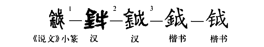 形聲字。《說文》:“鉞,車鑾聲也。從金,戉聲。《詩》曰:鑾聲鉞鉞。”徐鉉:“今俗作鐬,以鉞作斧戉之戉,非是。”桂馥義證:“《詩》曰者,《魯頌·泮水》文,彼作鸞聲噦噦。傳云:噦噦,言其聲也。馥案:鉞噦聲相近,本書眓讀若《詩》曰施罛濊濊。”邵瑛群經(jīng)正字:“此文《詩》凡三見,《采菽》作嘒,《庭燎》、《泮水》作噦,皆取聲同假借,而義與《說文》同。”據(jù)西周金文和傳世典籍戉與鉞為古今字,戉本為斧鉞的象形字,后加金字旁作鉞。從《說文》所引用的《詩》“鑾聲鉞鉞”句看,鋮、噦、嘒皆為借用,鉞當(dāng)為戉之今字。本義為斧鋮。(周寶宏)