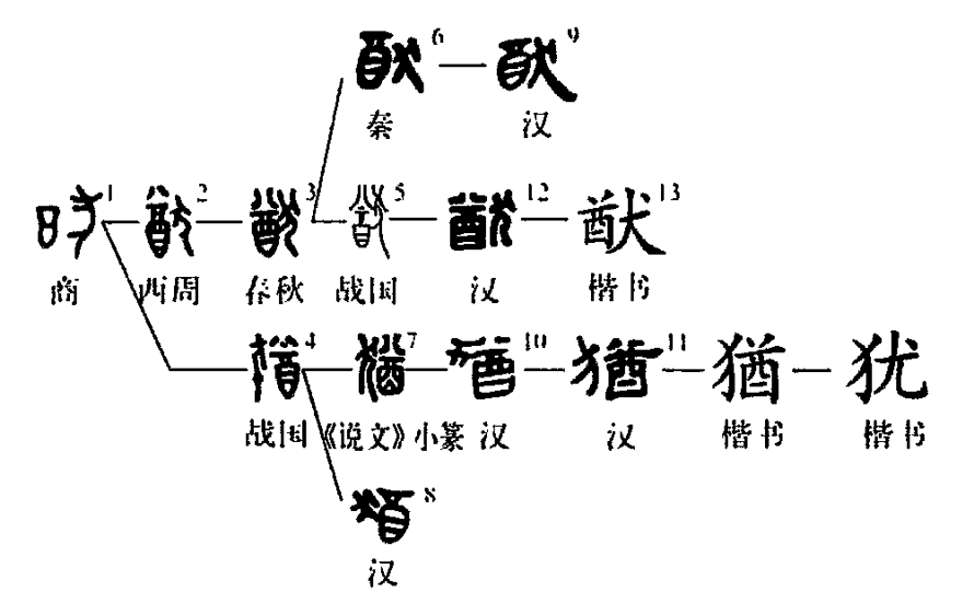 形聲字。從犬,酋聲。本義為猴類動物。