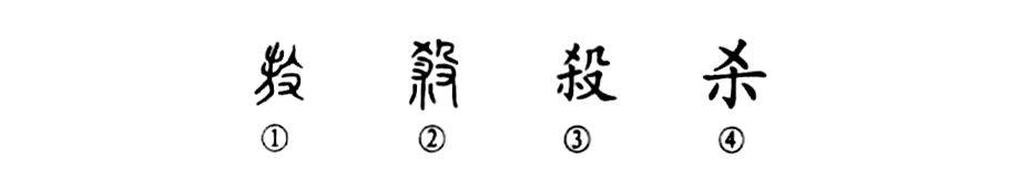 “為報年來殺風景,連江夢雨不知春。”這個“殺”字本為會意字。①是《說文》中的古文形體,左邊是一個長頭發(fā)、面朝左的人形,右邊是“殳”,表示一只手拿著棍棒向那個人打去。②是小篆的寫法。③是楷書繁體字。④為簡化字。