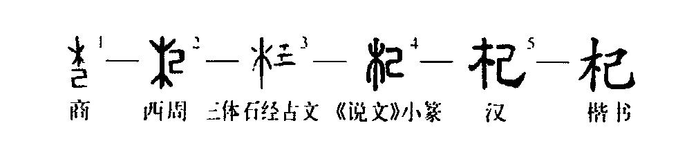 形聲字。從木,己聲。本義是樹木名。1.枸杞,一種落葉小灌木,果實可入藥。