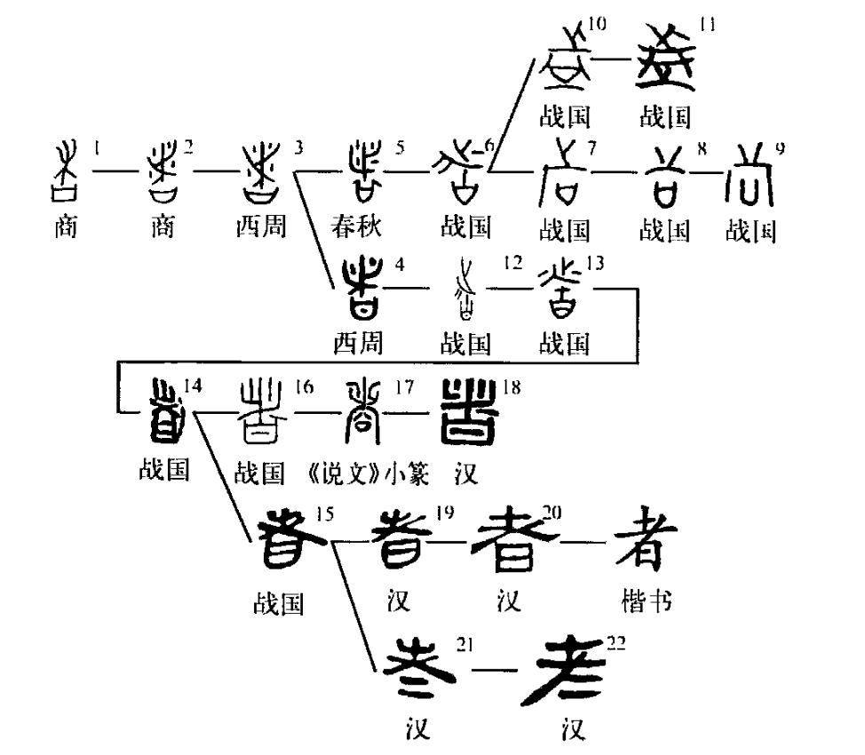 “廉頗者,趙之良將也。”這個“者”字本為象形字。①是金文的形體,其上部像櫧(zhū)樹形,其中四點像結子之形。
