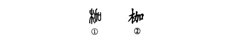 “因嫌紗帽小,致使鎖枷扛。”這個“枷”字是形聲字。①是小篆的形體,左為“木”,右為“加”,是一個“從木,加聲”的形聲字。②為楷書的形體。