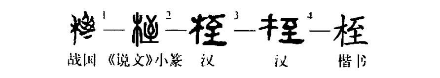 ?這是“中罪桎梏”的“桎”字,讀作zhì,本為形聲字。①是小篆的形體,為“從木,至聲”的形聲字。②是楷書的寫法,與小篆完全一致。