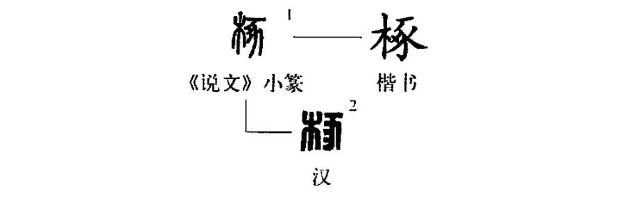 形聲字。從木,豖(chù)聲(字形2“豖”旁省筆,與“豕”相混)。本義指敲擊。