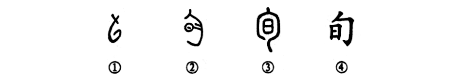 “年盈八旬,力鼎志堅。”這個“旬”字本為象形字。甲骨文①就像是周匝循環的形狀,表示周遍循環之意。②是金文的形體,中間增加一“日”字,表示“旬”與時間有關。③是小篆的形體。④為楷書的寫法。