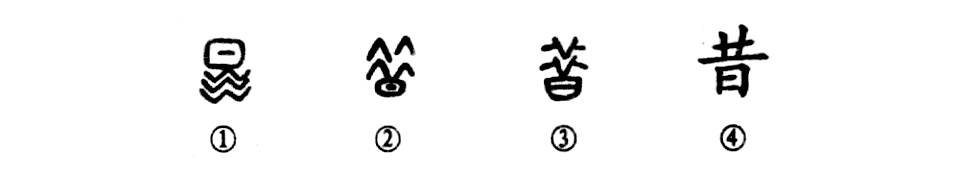?從甲骨文①的形體看,上部是“日”,下面是干肉之形,表示在日下曬干肉。而曬干肉非一日之功,時間長久就可以引申為“往昔”之意。②是金文的形體,與甲骨文的形體正相反。小篆③是從金文變來的,只是其上部的干肉之形發(fā)生了偽變。④是楷書的寫法,完全走樣了。
