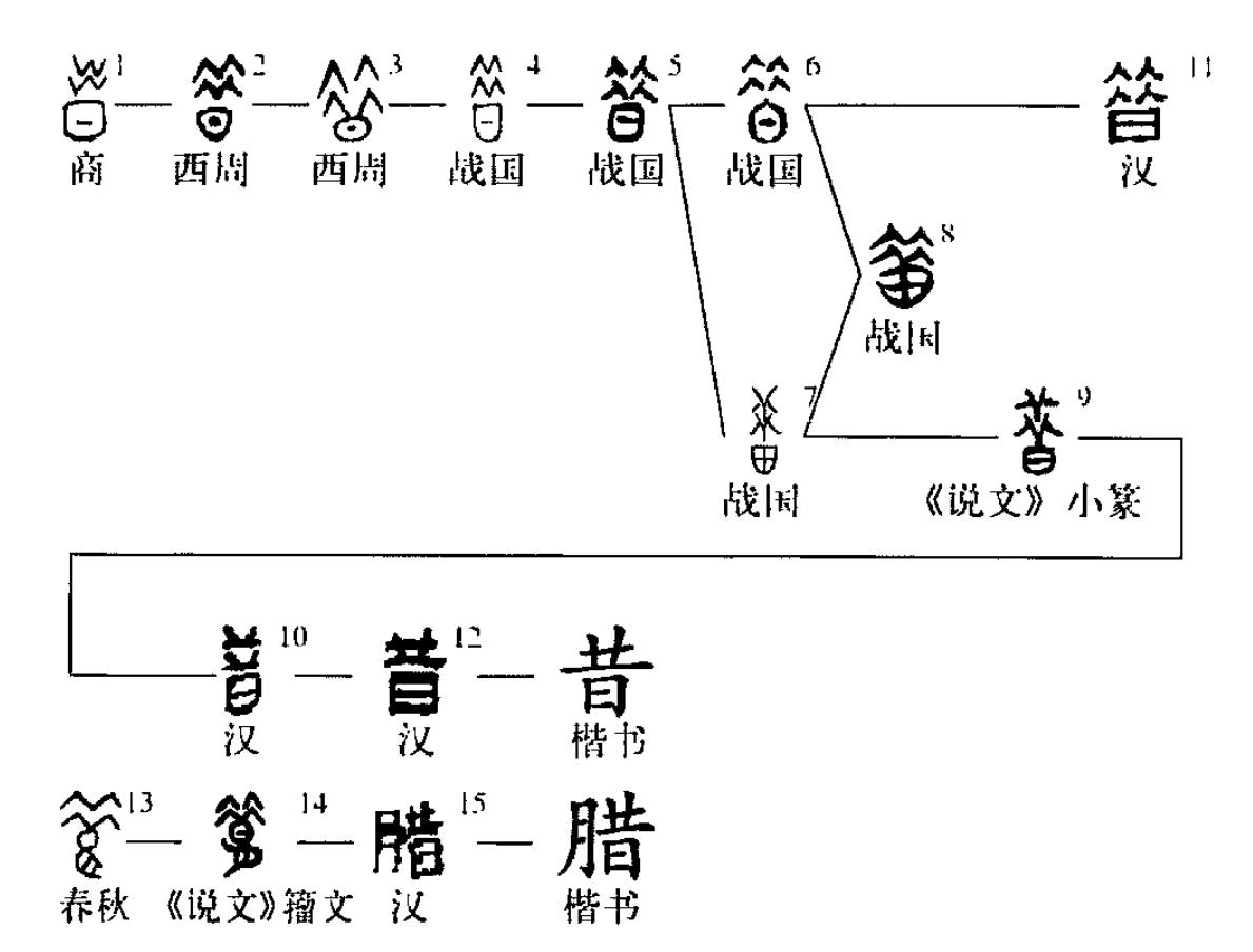 ”像洪水泛濫之意,所以“昔”的造字本義是指古代大洪水發(fā)生的時期。或以“