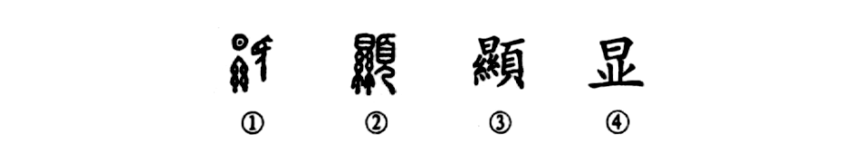 “軍功卓著,其名顯揚。”這個“顯”字本為會意字。①是金文的形體,右邊是一個面朝左站立的人,左上為“日”,左下為“絲”,這就像人在日下曝絲的形狀。②是小篆的形體,與金文的結構基本相同。③是楷書的繁體字。④為簡體字。