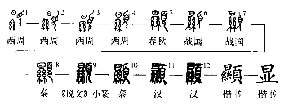 ”《說文》及清代《說文》學家們多認為顯字之本義為頭明飾,引申為顯明之義,顯為?字的后起字。王筠