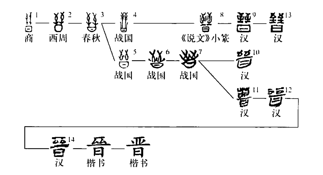 ”其實“晉”的本義應為“箭”,箭插入器中,可以引申為“插”義,如