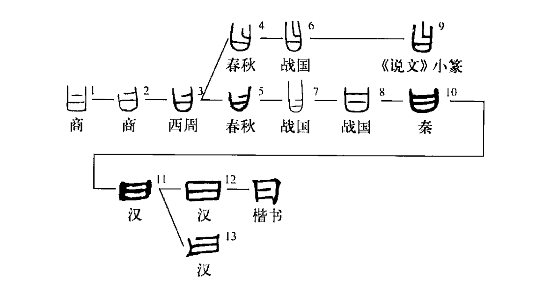 1、2《甲文編》208頁。3—7《金文編》315?316頁。8《甲金篆》301頁。9《說文》100頁。10《睡甲》69頁。11《馬王堆》193頁。12、13《甲金篆》302頁。