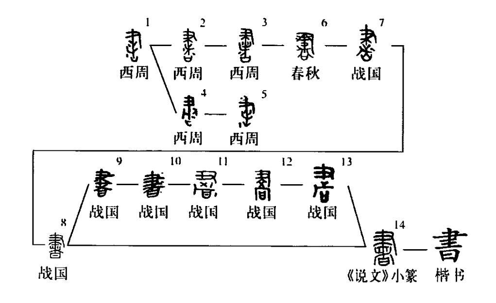 、肀。)戰(zhàn)國(guó)時(shí)同于小篆的標(biāo)準(zhǔn)體雖已出現(xiàn),但字形多歧仍然嚴(yán)重。或聿略作肀,或白(zì)作