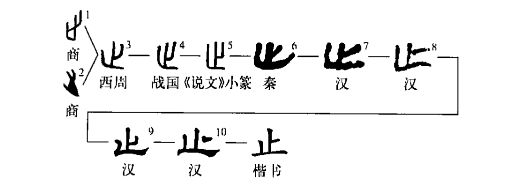 象形字。字本像人足之形,甲骨文中或寫實,或勾廓,字乃“趾”之初文。