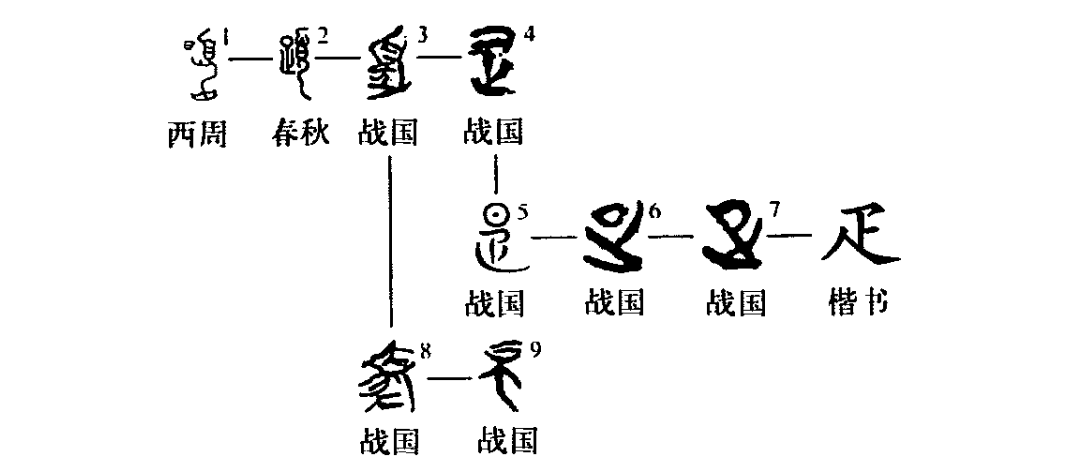 到了后世,該字的本義漸漸消失,而為“足”字所代替。