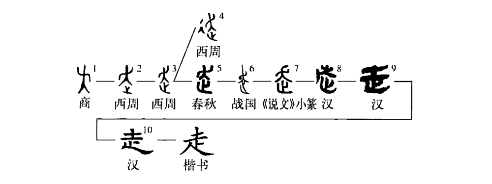 ,小篆“走”字從“夭”,乃形體之訛變。據(jù)古文字學(xué)家研究,小篆以前沒有