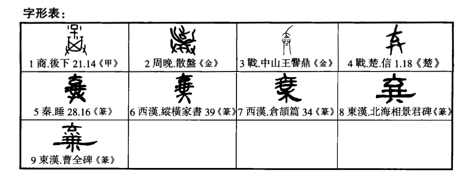 1 《甲文編》 189頁。2 《中山》 27頁。3 《包山》 58頁。4、5 《說文》 83頁。6 《睡甲》 57頁。7、8 《甲金篆》 250頁。